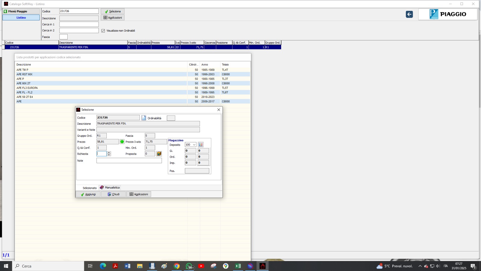 216021 BORDO LATERALE DESTRO PARABREZZA ORIGINALE PIAGGIO APE 50 MIX TM FL 2