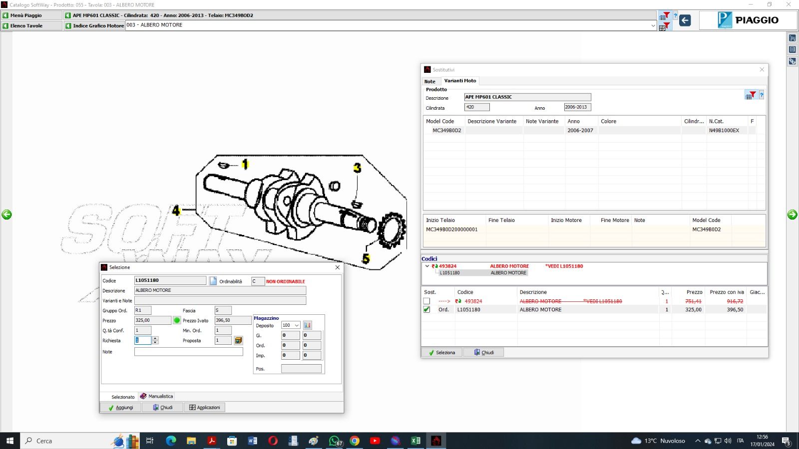 L1051180 ALBERO MOTORE COMPLETO DI BIELLA L1526234 APE CLASSIC 420