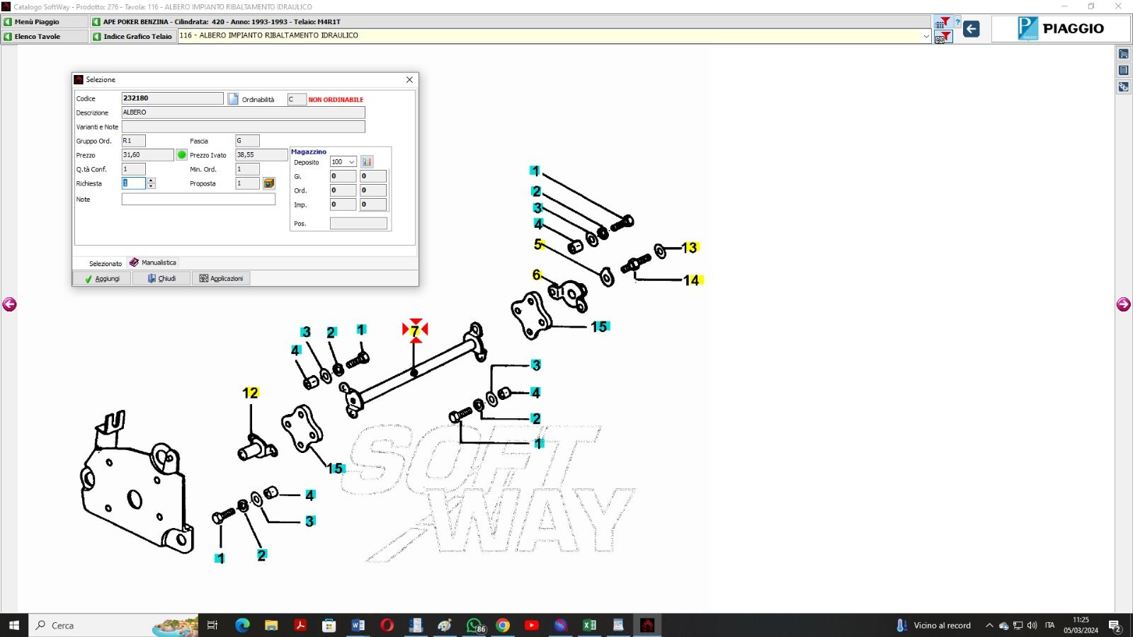 232180 ALBERINO RIBALTABILE PIAGGIO APE TM – MAX – POKER – CAR
