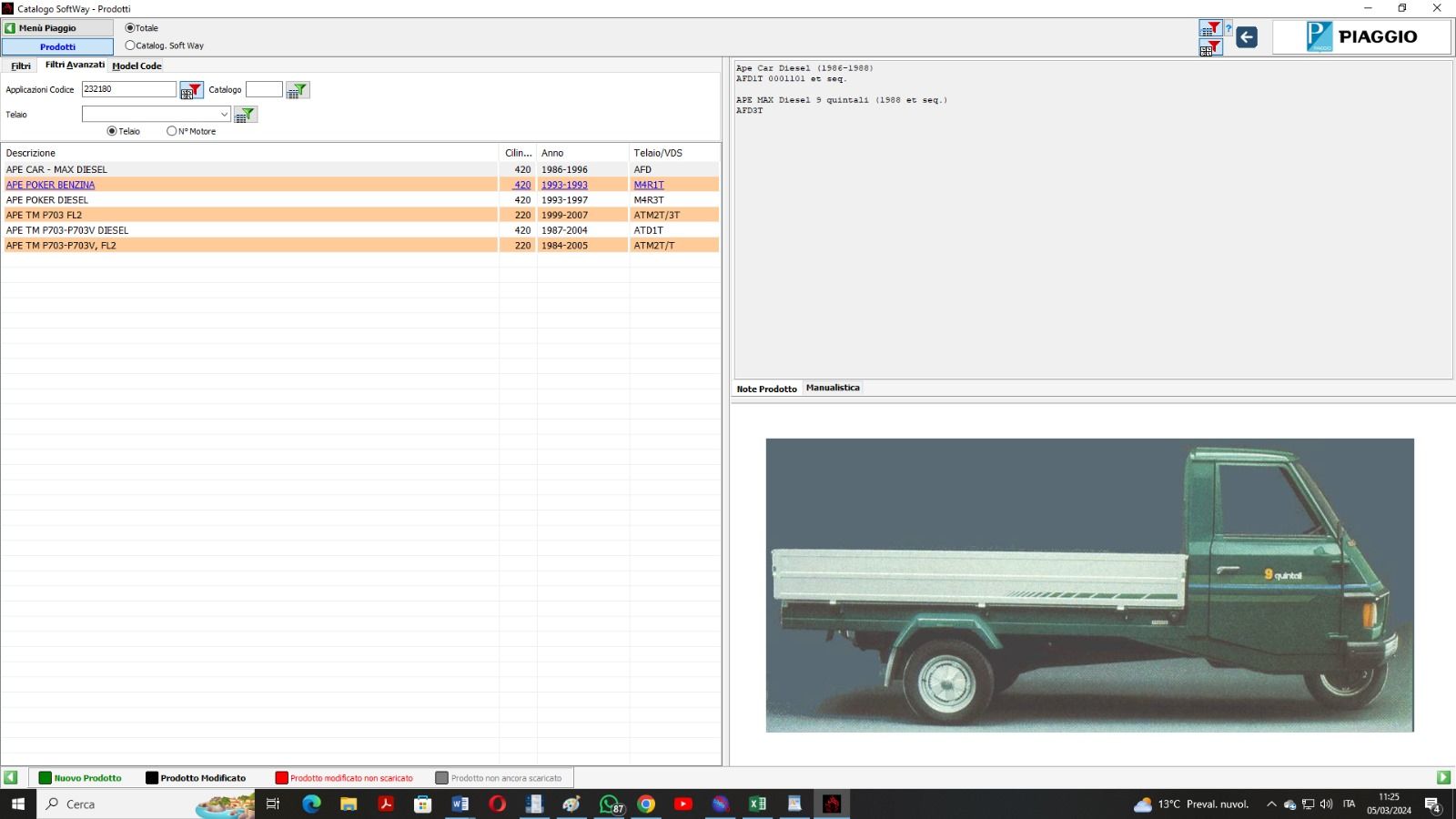 232180 APE TM 703 FL2-DIESEL / APE POKER BENZINA-DIESEL / APE CAR MAX DIESEL REVISIONATO
