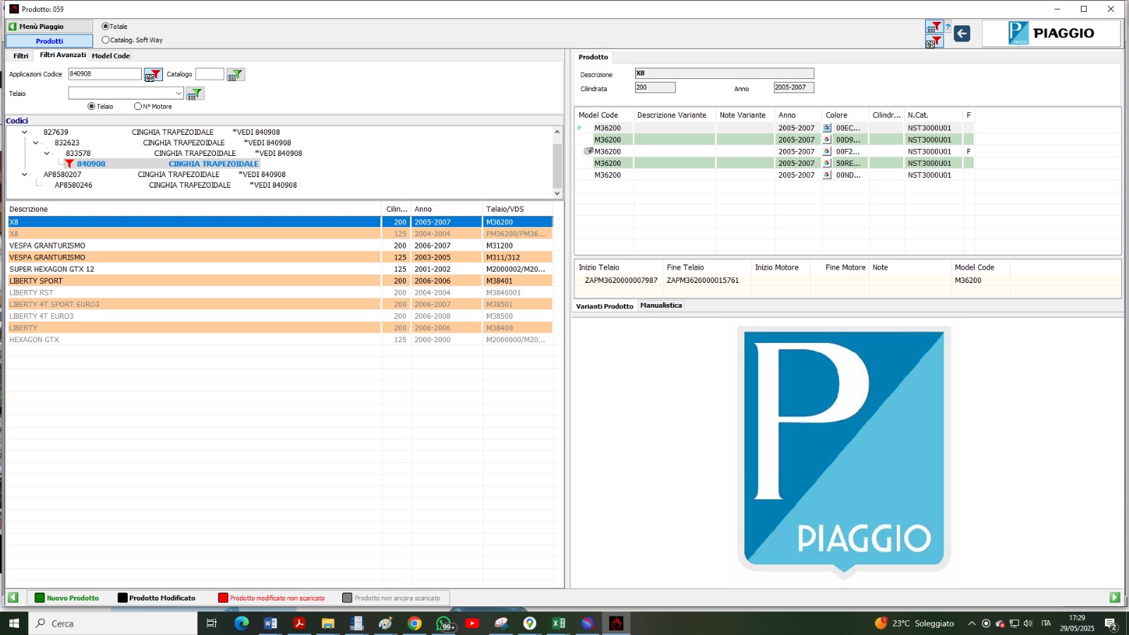 840908 CINGHIA TRASMISSIONE VESPA GT /LIBERTY 200 /RUNNER 200 X8/ATLANTIC