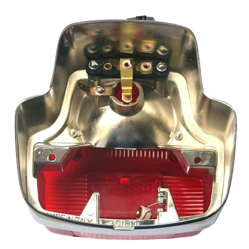 Fanale posteriore in metallo cromato Completo di corpo luminoso rosso con catadiottro, dicornice in alluminio senza visiera. Applicazioni: Vespa 125 – 150 SUPER – Dal 1966 Vespa 150 Sprint – VLB1T – Dal 1965 al 1974 Vespa 180 Super Sport – VSC1T – Dal 1965 al 1968 Articolo nuovo